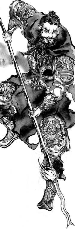 - Blade on a Stick: Guan Yu's legendary weapon guandao, is probably anachronistic – the earliest record of this type of weapon did not appear until more than 700 years later in the Song Dynasty.