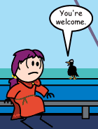 - In Sinfest, a more realistic strip turns Squidley from a Funny Animal to a talking one.