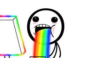 - Pink Fluffy Unicorns Dancing on Rainbows does with the music, though the Frozen Face smile is somewhat creepy.