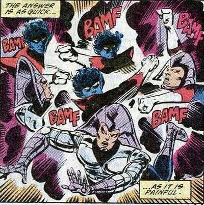 - For several early story arcs of Excalibur, Nightcrawler was unable to use this tactic due to an injury he sustained prior to leaving the X-Men, which left him just as vulnerable to the strain of teleporting as a normal human would be. He could only handle about 1-2 teleports a day, and had to rely on his less famous powers (Spider-Man-like wallcrawling and agility)...until a fight with Doctor Doom accidentally cured him. Then it was back to teleport-spamming.