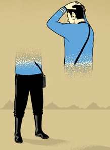 - Mad Magazine did a Star Trek parody during the original series run, and naturally Kirk in the transporter ends up reassembled...oddly - a hand where a foot should be, another hand sticking out of his ear...