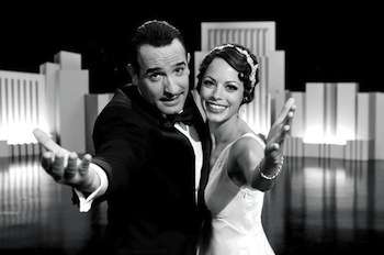 The Artist is a 2011 French film emulating the style of cinema in the 1920's, and the Academy Award winner for Best Picture of the year. Directed by Michel Hazanavicius, it stars Jean Dujardin as George Valentin, a silent movie star in 1920s Hollywood whose career goes into decline with the Great Depression and the advent of talking pictures. He falls in love with a young ingenue named Peppy Miller, played by Berenice Bejo, whose Hollywood career arc is the exact opposite of Dujardin's.