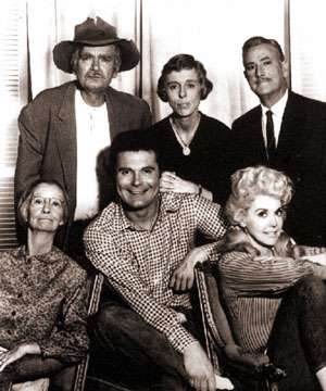A 1960s Sitcom about a family of Ozark-mountain folks who, when oil prospectors discover oil in their swamp, become fantastically rich and move to a mansion in Beverly Hills, where a greedy banker tries desperately to keep their money in his bank, which means keeping them happy in the foreign environment of Beverly Hills, while simultaneously keeping the city's residents from driving the Clampetts away. A great cast is aided by deceptively smart writing from creator Paul Henning, in a show which, contrary to popular perception, actually had great respect for the mountain people whom it portrayed (Paul Henning was from Missouri and knew such simple yet honorable and proud people in his youth). Incredibly successful, the show was eventually a victim of the so-called "Rural Purge" that eliminated shows from CBS' schedule that had a "country" or southern flavor. The series was canceled despite high ratings because they were the wrong ratings. It lasted from September, 1962 to March, 1971. A total of 274 episodes in 9 seasons.