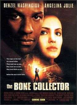 A thriller from 1999 (and first book in the Lincoln Rhyme series), the main characters are forensics expert Lincoln Rhyme (Denzel Washington) and a patrol cop, Amelia Donaghy (Angelina Jolie), who team up to solve a string of murder cases in which the killer always removes a shard of bone from the victims.