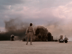 - In Star Wars, Luke is obliged to become a Jedi when his home is burned down with his aunt and uncle left as charred remains outside. However, he wanted to help fight the Empire in the first place but his Uncle and Aunt wouldn't allow it. So it was more their refusal than his.