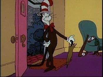 - Double Entendre: The live-action adaptation was packed with them. One of the most prominent being The Cat saying "Dirty ho!" as he throws away a garden ho.