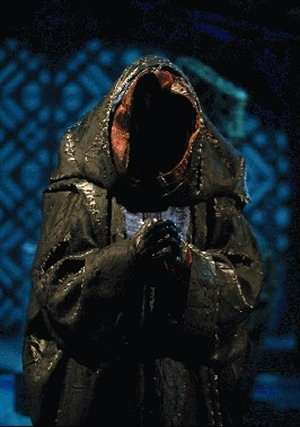 - Doctor Claw from the animated Inspector Gadget (who wasn't just faceless, he was mostly bodiless; only his arms and hands were ever shown). This was later ruined by a toy that did show his face and body (and utterly destroyed his coolness factor by presenting him as a skinny white-haired man with a twisted-lip sneer), and also to a somewhat lesser extent by a Super Nintendo game that showed half his face in the final battle (where he was at least given glowing eyes). The toy went out of its way to play it up, too. The packaging specifically covered his face with a sign, informing potential buyers that they would have to buy the package to see what he looked like.