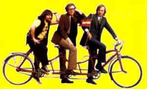 The Goodies starred Tim Brooke-Taylor, Graeme Garden and Bill Oddie as three flatmates who run an agency that promises it can do "anything, anywhere, at any time". The BBC's own historical reference for the show describes it as a "live action version of a typical Warner Brothers cartoon", which is quite accurate, although sidestepping completely much of the thinly veiled social satire the show was inclined towards. Entire episodes were devoted to poking fun at topical subjects as diverse as TV censorship Nazis like Mary Whitehouse, nuclear testing, police brutality, Saturday Night Fever and the general crappiness of the British Post. Central to the show were the exaggerated versions of themselves that the leads played -- conservative royalist Tim, twisted gadgeteer Graeme, and Earth-child proto-hobbit Bill. The intersection of these three personalities generated as much comedy as the increasingly-bizarre situations that they found themselves in. Their trademark was the "Trandem" -- a bicycle-built-for-three which they invariably mounted and fell off of once per episode before riding to their next adventure.