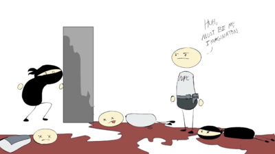 - ↑ Stealth-game guards also tend to have very limited peripheral vision and a very predictable sweep of the head while patrolling, although it's a smidge unfair to call someone "stupid" for what are obvious physiological or psychological problems. Whoever hired them, on the other hand...
