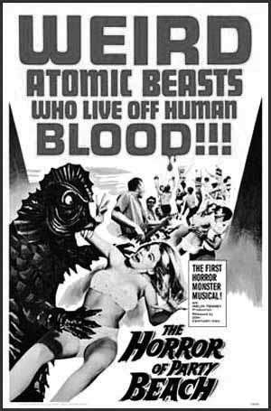 Turns out someone's been dumping barrels of radioactive waste into the ocean, causing the skeletal crew of a sunken ship to mutate into frog-fish things that proceed to hunt down and kill every young woman they can find. The elderly and ineffectual Dr. Gavin, assisted accidentally by black servant Eulabelle, discovers that the things are vulnerable to sodium. Taking their time, the heroes eventually get around to tracking down the monsters' lair (as the kill count climbs ever higher), work up the energy to get a load of sodium, and then throw it on the horrors of Party Beach.