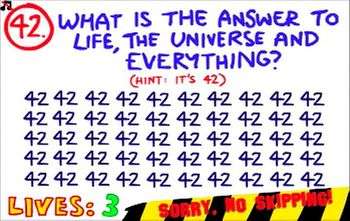 - Obvious Rule Patch: In early releases of the first quiz, people would cheat their way through question 106 by right-clicking and then waiting until it got to the end. Later versions patched it so that now right-clicking on that question kills you.