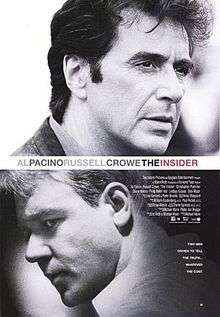The Insider is a 1999 film starring Russell Crowe, Al Pacino and Christopher Plummer. It tells the true story of Jeffrey Weigand, a researcher at Brown & Williamson tobacco company. After Weigand is fired from B&W he goes to 60 Minutes and producer Lowell Bergman to spill the secrets he knows about the tobacco industry. Weigand's and Bergman's attempts to reveal the truth about Big Tobacco lead to resistance from B&W--and, surprisingly, from their own network.