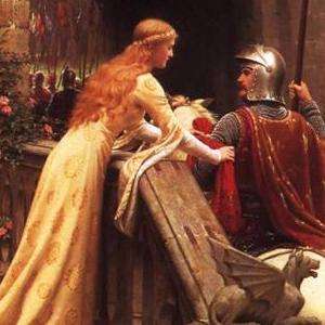 Each knight wore a lady's token, a glove, scarf or rose, bound to his helmet or fastened to his sword-belt. |