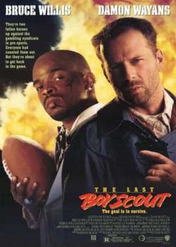 The Last Boy Scout is a 1991 action film starring Bruce Willis as former Secret Service agent Joe Hallenback, now working as a private detective, and Damon Wayans as retired professional football player Jimmy Dix. The two join forces to solve the murder of Dix’s girlfriend Cory (played by the then-obscure Halle Berry), leading them into a conspiracy and the plotted assassination of a senator. The entire film consists of often violent action scenes and an endless parade of one-liners. Classic example of better than it sounds.
