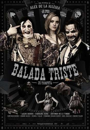 A 2011 Black Comedy directed by. Álex de la Iglesia. In 1937, a clown is forcibly recruited by the militia to serve in the Spanish Civil War where he manages to massacre an entire platoon with a machete. Years later in 1973 against the backdrop of Franco-era Spain, his son Javier follows in his father's footsteps, working as a Sad Clown. There he falls in love with the beautiful acrobat Natalia and in the process runs amok of her abusive lover, Sergio, the Happy Clown. A twisted love triangle ensues develops between the two clowns that escalates into insanity.