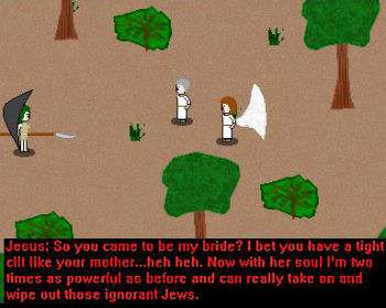 The Last Resurrection is an independently developed Windows game from 2002 made by Sean J. Nichols, released in four chapters. The most notable thing about it is its massively anti-Christian slant, with Jesus as the main villain. Part one is set during the first century CE and details Christ's first plan for world domination; part two is set in the Middle Ages; part three is set in 19th-century Transylvania and reveals that Dracula was working for Jesus, and part four is set during World War II, in which Jesus pals about with Hitler. The main characters are a range of succubi and vampires.