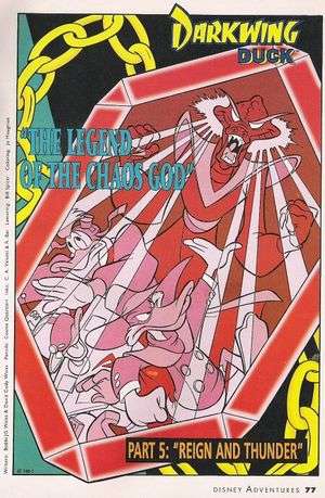 An epic five-part comic story that ran in Disney Adventures in the later half of 1994. Written by Bobbi J.G. Weiss and David Cody Weiss and illustrated by Cosme Quartieri, it features a Cross Through linking together The Disney Afternoon shows Tale Spin, Chip 'n Dale Rescue Rangers, Goof Troop, DuckTales (1987), and Darkwing Duck. Published immediately following Marv Wolfman's departure as the comics editor for the magazine and at the start of Heidi MacDonald's run in that position, it was (probably) intended to build up to and commemorate the magazine's 50th issue, but ended one issue later than planned (see below). Despite that little delay, it is still considered the magazine's Moment of Awesome.