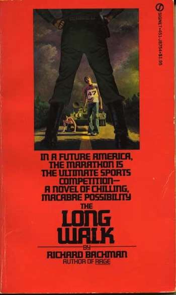 The Long Walk is a novel by Stephen King published under the pseudonym Richard Bachman in 1979 as a paperback original. It was collected in 1985 in the hardcover omnibus The Bachman Books, and has seen several reprints since, as both paperback & hardback. Set in a near future, the plot revolves around the contestants of a gruelling walking contest, held annually by a somewhat despotic and totalitarian version of the United States of America. The rules of the titular Long Walk are as follows (at least the ones that are mentioned in the novel):