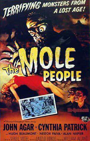 The Mole People is a black-and-white sci-fi movie starring John Agar and Hugh Beaumont as archaeologists searching for remnants of the Sumerian civilization. After a monologue by an English professor essentially Lampshade Hanging that the movie is fiction, we're brought to unspecified Asia (probably the Himalayas) where the search is ongoing.