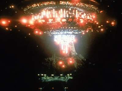 See also: Standard Sci-Fi Fleet, Flying Saucer. Might overlap with The Battlestar if it doesn't already harbor dozens of Battlestars inside it. Not to be confused with the other kind of ship.
