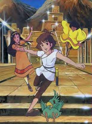 The Mysterious Cities of Gold (Japanese name: Taiyo No Ko Esuteban, French name: Les Mystérieuses Cités d'or), is a Franco-Japanese co-production dating to 1982. The show is animated in a style that's a distinct combination of Japanese and Western animation, features a long, continuous storyline, and has a dedicated and loyal fanbase.