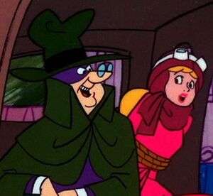 - Did I Just Say That Out Loud?: The Hooded Claw in "Wild West Peril" after Penelope makes off with his hot air balloon.