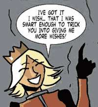 - Disproportionate Retribution: Subverted - a minor character in his first appearance is sent to the dungeon, apparently to die - being hung next to a skeleton - for telling a bad joke, but the next strip reveals that the skeleton hanging next to him is actually a living skeleton sent there (briefly) for the same reason.