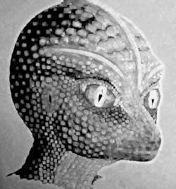 The Reptilians are one of the stock Humanoid Aliens, sporting reptile-like features and popping up frequently in Science Fiction and abduction stories. They share quite a few similarities with Little Green Men and The Greys in terms of appearance (human-like, large eyes, baldness, strange skin) and modus operandi (abduction, invasion), but they have enough unique features to set themselves apart.