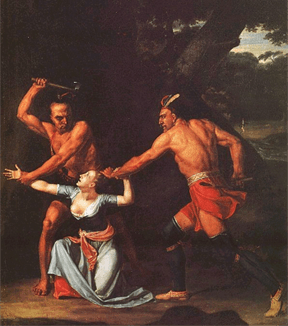 This trope has ancient forerunners as practically every culture has identified a more primitive neighbor as "savages", particularly when there existed a conflict of interests. It became especially common in the age of imperialism during which blatantly racist ideas were used to advance a policy of European nations "civilizing" the rest of the world. In the United States, expanding settlers repeatedly came into conflict with the native tribes. Infrequent abhorrent acts of violence perpetrated by the natives against the intruders led to the perception that all natives were brutal savages, especially considering that the settlers were all saints. Battles against savage Indians were commonplace in Western fiction up until the modern era, putting this on the edge of becoming a Dead Horse Trope. In the era of the "Revisionist Western," (the era in which we find ourselves) fiction often attempts to provide a more diverse and historically accurate view of violence by and against Native Americans.