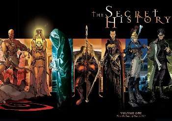 The Secret History is a French Comic Book written by Jean-Pierre Pécau and illustrated by a number of artists, but mostly Igor Kordey. It tells the story of four immortal siblings, two brothers and two sisters, who use their superhuman intellect and superpowered runestones to affect world events throughout history. The brothers are Erlin and Dyo, the sisters Reka and Aker. All four are known collectively as the Archons. Erlin is more or less always heroic, Dyo is always evil and has a particular hatred for Jews, Aker is usually heroic but sometimes not, and Reka does a few Heel Face Turns, as if she's suffering from immortal PMS. The Fifth Archon, William de Lecce, appears later on in history after the Holy Roman Emperor Henry VI castrated and blinded him in 1194. This somehow caused him to gain mystical powers, and also twisted his psyche into something monstrously evil. William also hates the Jewish People.