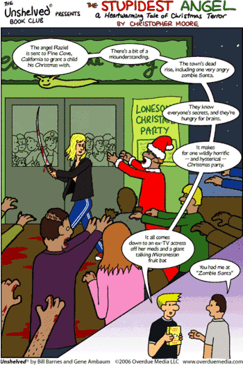 - The Verse: The novel takes place in Pine Cove, California, a fictional location Moore is fond of using in his novels. The angel Raziel is a Recurring Character as well, and Tucker Case and his bat were originally introduced in Island of the Sequined Love Nun.