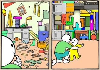 - In the manga version of Sayonara, Zetsubou-sensei, insane Neat Freak Chiri's spring cleaning ultimately indulges in this trope. She becomes obsessed with filling dead space and starts stacking objects and people like blocks. Harumi comments that Chiri was always good at Tetris.