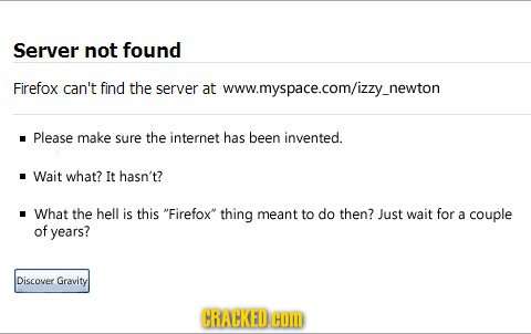 You travel back in time to The Middle Ages or One Million BC, turn on your Time Machine's computer and... there's Google! Apparently the Web has always been there... humans just discovered how to access it in the early 1990s. This phenomenon results from filmmakers wanting to have their time-traveler show off the World Wide Boomstick without letting logic get in the way. However, anyone with a passing understanding of technology will realize that this implies the Web was always floating out there and that people just needed the right equipment to access it. (Which, we grant you, is a pretty nifty idea for a story gimmick, but this trope more often occurs because the writers just weren't paying attention.)