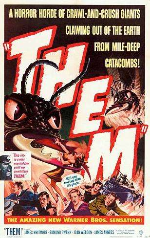 Classic 1954 horror/sci-fi movie. A little girl is found wandering in the New Mexican desert, the only survivor of an unknown calamity that befell her vacationing family. When roused from her catatonia, she can only scream "Theeeeem!" Official investigation finally leads to the discovery that the culprits are Cadillac-sized ants, mutated by atomic radiation. The race is then on to locate and destroy the ants' nest before new queens hatch out and fly across the world.
