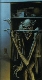 The bogeyman in your closet. The monster lurking in the shadows under your bed. The guy who starts scratching his long, razor-sharp, nails on your windowpane the instant you draw the curtains and turn out the lights. These are the the Things that Go Bump in the Night. They are very real when you are six or seven years old, and even after you supposedly grow up and move far away, they're still back there, somewhere.