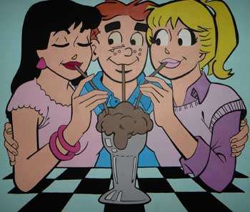 - Girl Genius: Agatha/Gil/Tarvek, outright suggested by Moloch, Zeetha, Lucrezia, the Castle, Agatha's Animated Actor in a side story, the trio themselves on an opiate high, and most recently by Gil and Tarvek themselves, perfectly sober and in canon.