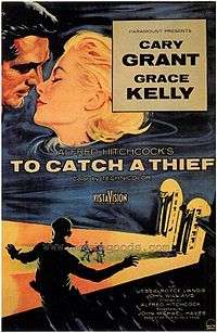 To Catch a Thief is an 1955 romantic thriller, directed by Alfred Hitchcock, based on a novel by David Dodge. The protagonist is John Robie (Cary Grant) a retired jewel thief, who lives in France, since the government pardoned his crimes, because he took part in the French Resistance. However, a series of robberies happen, that closely resemble his style, and the police suspects him. Robie, with the help of insurance man Hughson (John Williams, not that one) plans to capture the burglar in the act to prove his innocence. He obtains a list of the owners of the most expensive jewels on the Riviera, who are the likely targets, from Hughson. The first names on the list are Jessie Stevens (Jessie Royce Landis) and her daughter Francie (Grace Kelly). Robie befriends them, but Francie soon sees through his disguise; however that doesn't bother her, because she thinks stealing jewels might be fun. She seduces Robie; however, when her mother's jewels are stolen, she feels betrayed, and calls the police on him. Robie escapes, he and Francie eventually clear up the misunderstanding, and capture the real thief together.