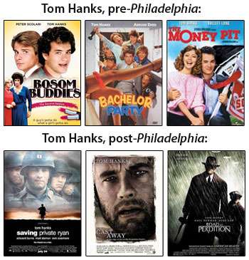 - Tom Hanks first rose to fame with a series of comedies in the 1980s. Then, in 1993, he won critical praise and a Best Actor Oscar for his dramatic turn in Philadelphia; the following year he won again for Forrest Gump. Since then his stock in trade has largely been in dramatic roles with a comedic bent. The trope was hilariously Lampshaded in Real Life on his Inside The Actors Studio appearance when he spent 45 minutes discussing his art, only for a fan to gush that Turner And Hooch was her favorite movie ever!!! during the Q&A period. During a "Year In Review" for 2009, MSN stated how much they miss the funny Tom Hanks.