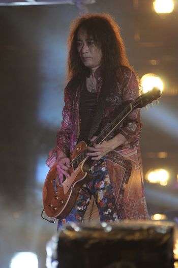 Tomoaki Ishizuka (best known by his stage name of "Pata," either chosen by himself or bestowed upon him by other bandmates because of how he reminded them of the character in a manga) is a Japanese rock guitarist best known for being the second guitarist of the band X Japan. Before his days with X Japan, he had his own band, "Judy" which he had asked Yoshiki to join, an offer which was turned down. Later, when one of X's guitarists took ill, Yoshiki asked Pata to join X Japan, he accepted, and the band's most recognizable lineup was in place.