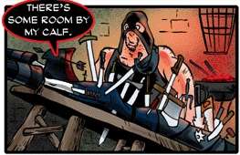 - Girly (here) features a torture chamber designed as a mock-up of hell, but when Winter and Otra arrive, there are only two prisoners. One of them is an immortal who loves being eviscerated. The other is a veterinarian who, while she has not shown any masochistic tendencies in this comic, is an Expy of an earlier character who has appeared in some less reputable comics.