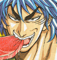 The series is filled with incredibly buff men reminiscent of older manga such as Fist of the North Star or the early parts of JoJo's Bizarre Adventure. Modern-day Shonen tropes like Muscles Are Meaningless, Idiot Hero, Kid Hero or Bishonen Jump Syndrome are mostly averted. This series also contains gratuitous amounts of Food Porn, so readers are advised to eat beforehand or have some snacks handy. There is also an OVA, a crossover with One Piece has aired, and an anime adaptation debuted in April 2011 (simulcast by FUNimation).