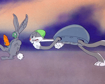 - Deranged Animation: Some of Rod Scribner's animation of Bugs watching "Tortoise Beats Hare" in frustration.