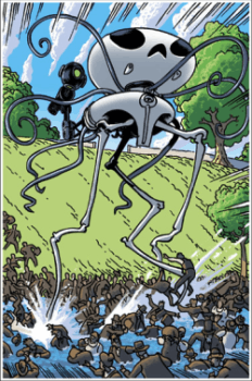 - Aside from being four-legged, the spider droid matches the Wellsian Martian fighting machine, right down to the heat ray. Only the traditional black-smoke bomb launcher (which rarely appears outside Wells' literary masterpiece) was replaced by an anti-personnel blaster cannon.