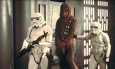 - In Star Wars: A New Hope, where Han and Luke pretend to be transporting their Wookiee "prisoner," Chewbacca. And Leia recycled the trick for the third movie.