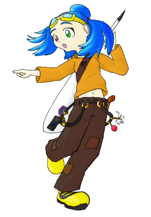- Has blue hair and Mismatched Eyes (an obvious allusion to her sailor ways). Her blue hair and orange top form the old TV Tropes colour scheme.