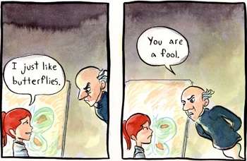 - Inverted in petermullinvideo's rant on high school literature, where he complains that they're too depressing and that "we should read happy books!"
