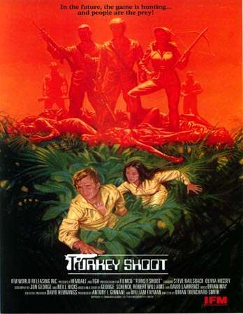 The plot of the film is fairly archetypal: it's Twenty Minutes Into the Future and Australia is controlled by a fascist totalitarian government. For the slightest percieved offenses, "deviants" are sent to prison camps to be subjected to reformative torture. The new arrivals at Re-Ed Camp 47 are Chris Walters (Olivia Hussey), a shopkeeper accused of helping a rebel; Rita Daniels (Lynda Stoner), a suspected sex worker; and Paul Anders (Steve Railsback), a political dissident who has escaped from several other camps. After suffering brutal treatment at the hands of Camp Master Charles Thatcher (Michael Craig) and his chief enforcer, Ritter (Roger Ward), the prisoners accept a deadly deal. They will be human prey in a 'turkey shoot' Thatcher has organised for Secretary Mallory (Noel Ferrier), and fellow VIPs Jennifer (Carmen Duncan) and Tito (Michael Petrovich). If they can evade the heavily armed guests in the surrounding jungle until sundown, Chris, Rita and Paul will be set free, or so Thatcher claims...