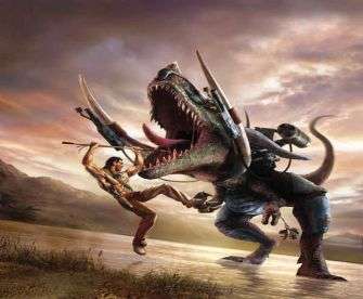 - Everything's Better with Dinosaurs: The main storyline has to do with the job of an ancient warrior trying to keep The Omniverse from collapsing; using his ancient wisdom to survive in a dark, alien land. They could just have easily have come up with some pretty strange creatures for the Lost Lands; but Bio-mechanical Dinosaurs were apparently better fitting.