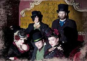 The band has created a back-story set in a fictional area based on a mixture of Victorian Britain and the American Old West, with the band members taking on alternate identities that relate to that back-story. In character, the band members are time travellers who have come from that past using one of Professor Mangrove's amazing inventions. Most of their songs are set in and tell stories about this fictional 19th century place, sung from the points-of-view of characters like "Clive the Barker", "Dread Penny" and "Elwood Lovekraken". A page on their website contains "The Unextraordinary Encyclopedia", a list of names, places and events in this fictional world that are referred to in their music.