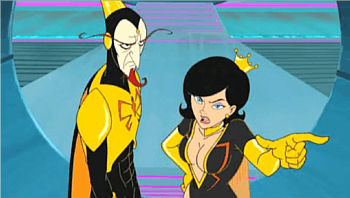 Lord Worldbreaker and Lady Firestorm are, individually, serious threats to the heroes, but what happens if they're suddenly working intimately together? That's when it gets really dangerous. A pair of villains capable of channeling The Power of Love is enough to give even the most hardened group of heroes a serious challenge, and worse yet, seeing the villains in love may make them doubt their own motivations. Should one of the villains fall, the other one grieving over their fallen lover is quite likely to initialize an Alas, Poor Villain scenario, and maybe even a My God, What Have I Done?. Should another villain start messing with the happy couple, it's usually played as a Kick the Dog moment.